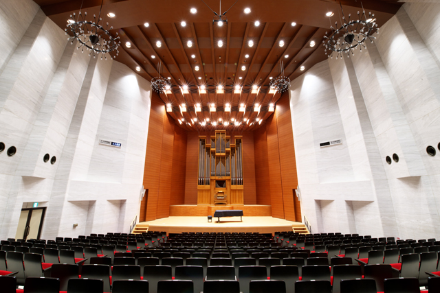 オーケストラピット使用も可能ながら多目的に使用できる客席数1,252席の大ホールと、国内では数少ない小規模ホールでパイプオルガンを備えた客席数425席の小ホールがあり、日々プロの音楽家から市民の皆様まで幅広く利用されています。